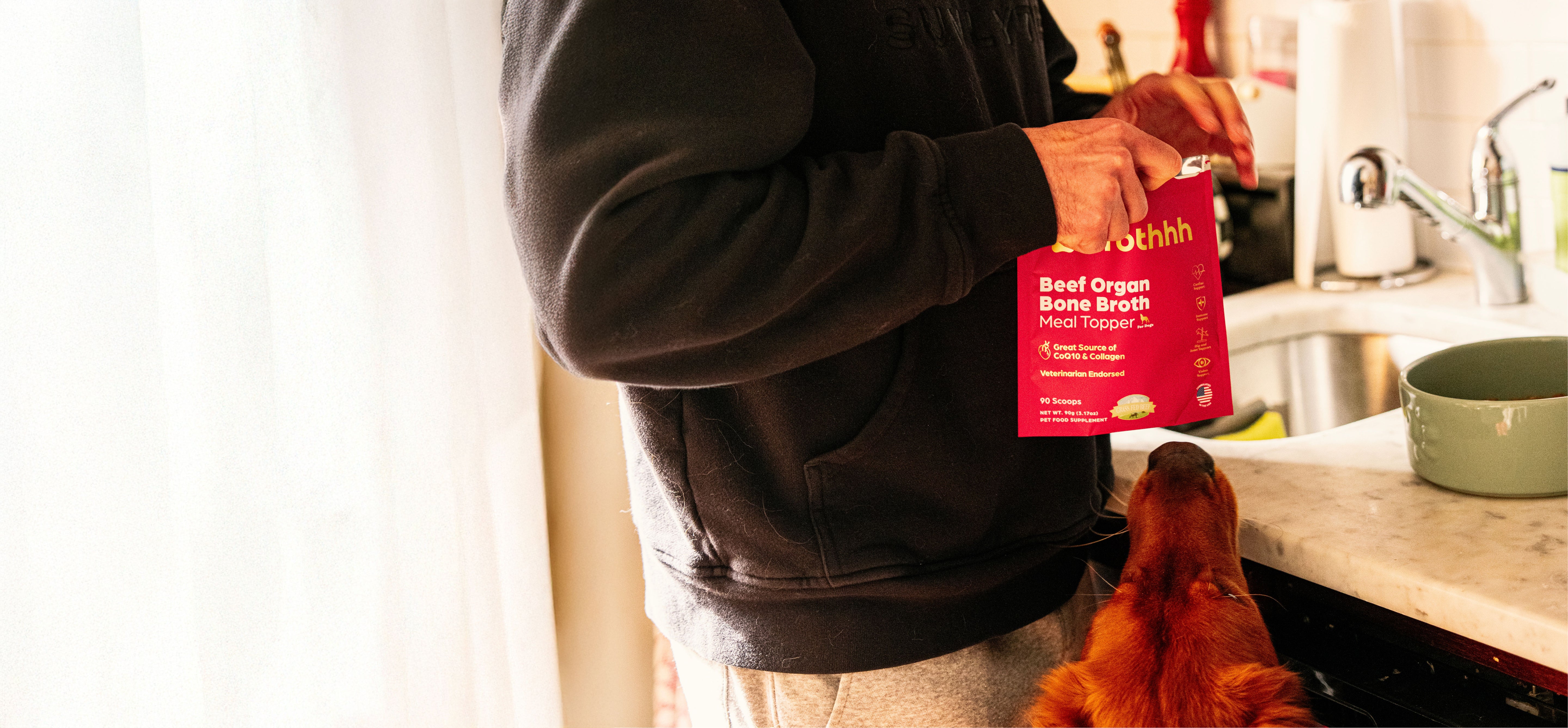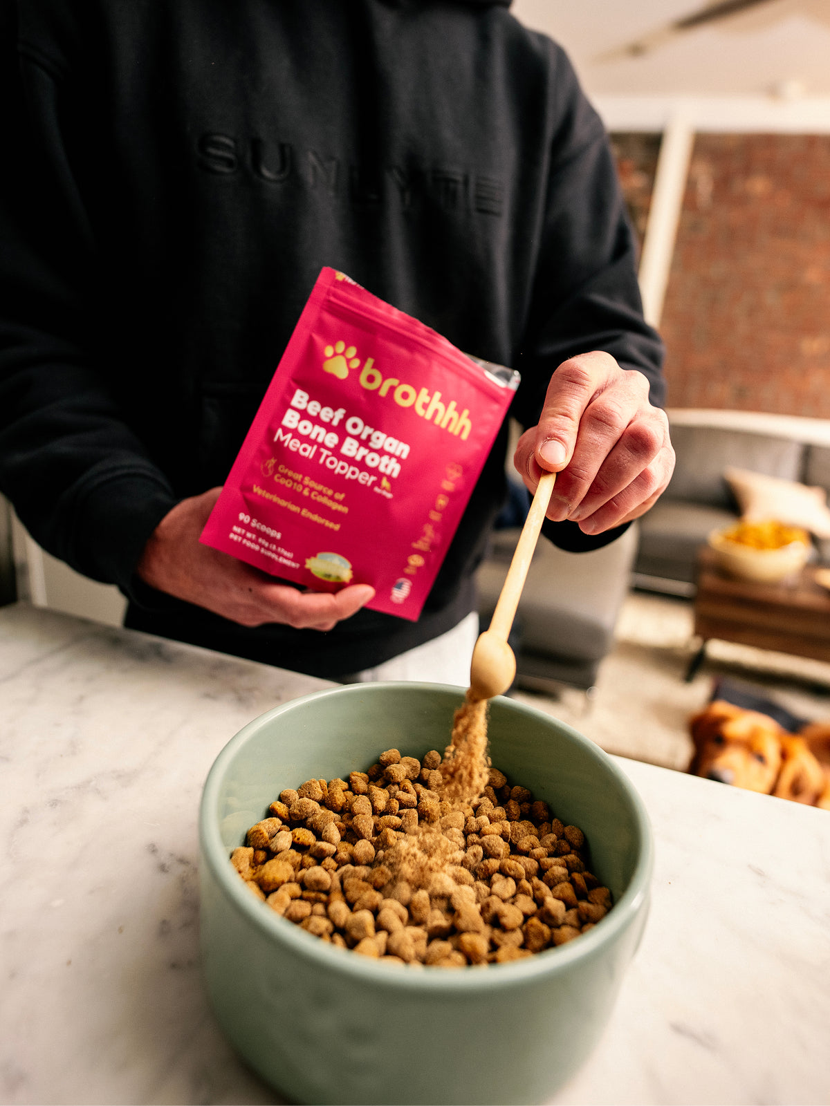 100% Grass-Fed Beef Organs + Bone Broth Protein as a meal topper your dog will devour:
